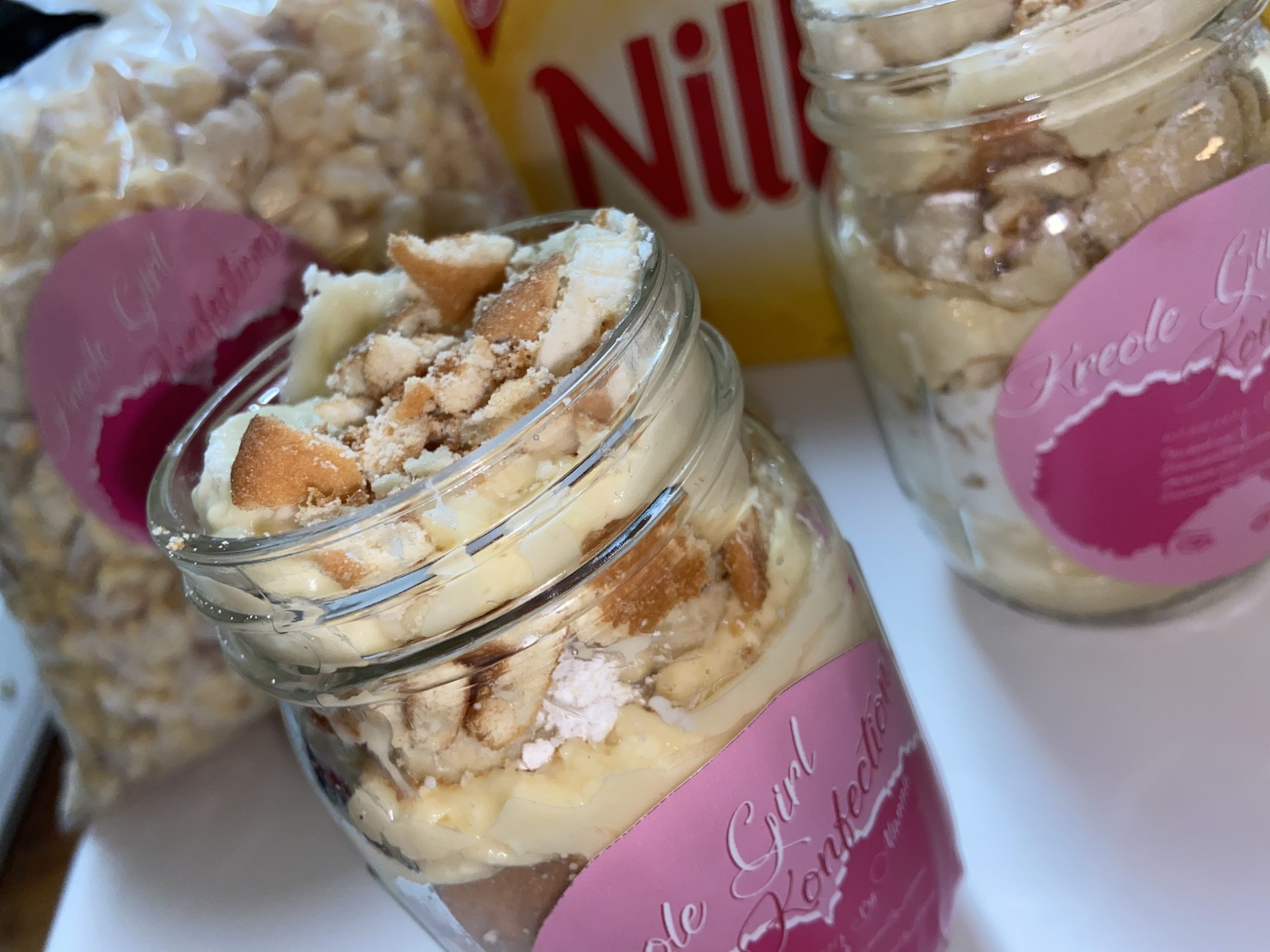 A BEST SELLER! Layers on Layers of Banana, Crushed Nilla Wafers, and the #Kreolegirlkonfectionista's Famous banana pudding cookies, and whipped cream! (Not available for shipping)