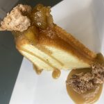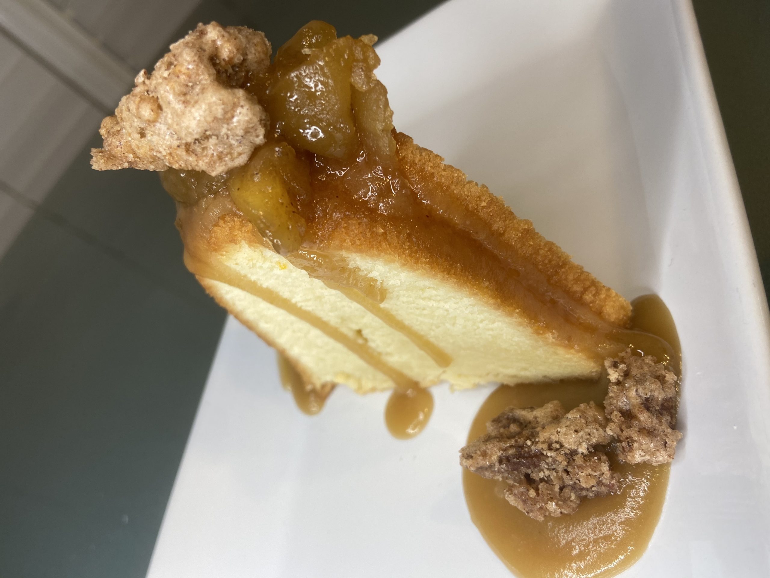 Cream Cheese Pound Cake topped with A Cinnamon Sugar Apple and Crown Apple Dulce De Leche Sauce.