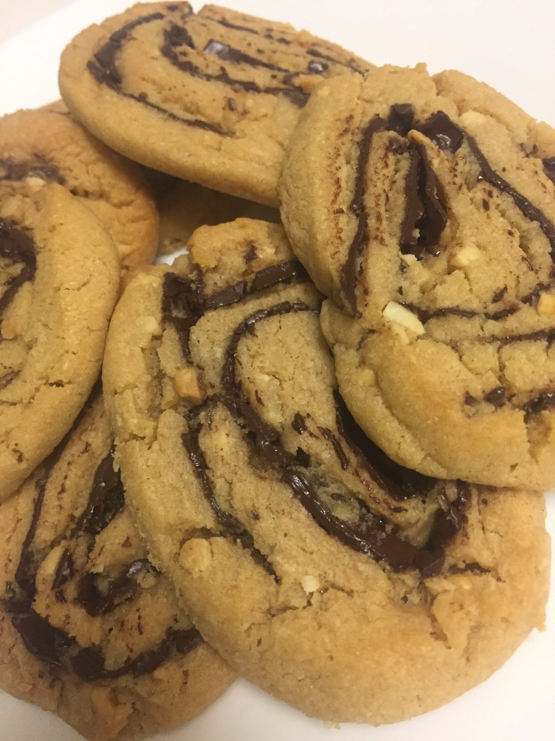 Crunchy Peanut Butter roll cookie with chocolate swirls. A #KGK Fave!